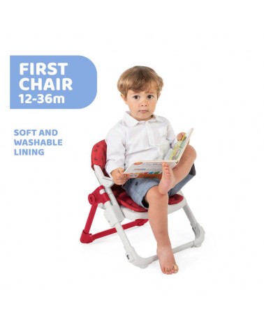 - Première chaise (12-36 mois) : Retirez le plateau et les sangles pour transformer le rehausseur en une chaise confortable à poser au sol pour les moments de jeu ou de détente.